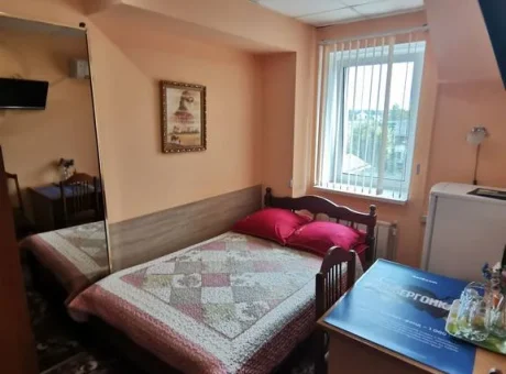 Двухместный номер стандарт с двухспальной кроватью собственным санузлом и душевой.