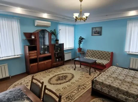 В номере: двухспальная кровать, угловой диван, прикроватная тумба, стол, стул, телевизор, косметика для душа, полотенца, тапочки, WI-FI, кондиционер, душ, санузел.