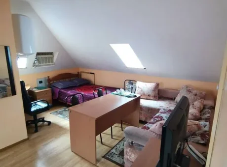 Трехместный номер с двухспальной кроватью и диваном с собственным санузлом и душем.
